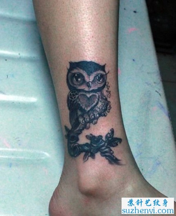 腿部猫头鹰纹身_腿部纹身图案大全_纹身图吧