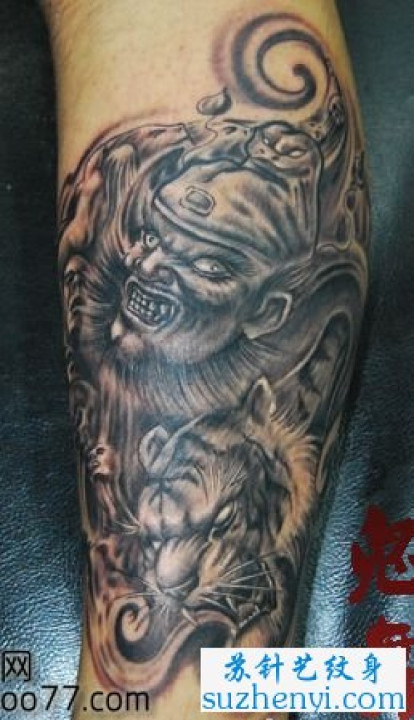 腿部钟馗老虎纹身_腿部纹身图案大全_纹身图吧