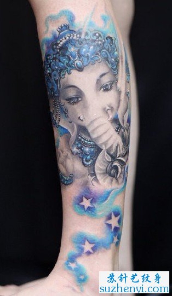 腿部象神纹身_腿部纹身图案大全_纹身图吧