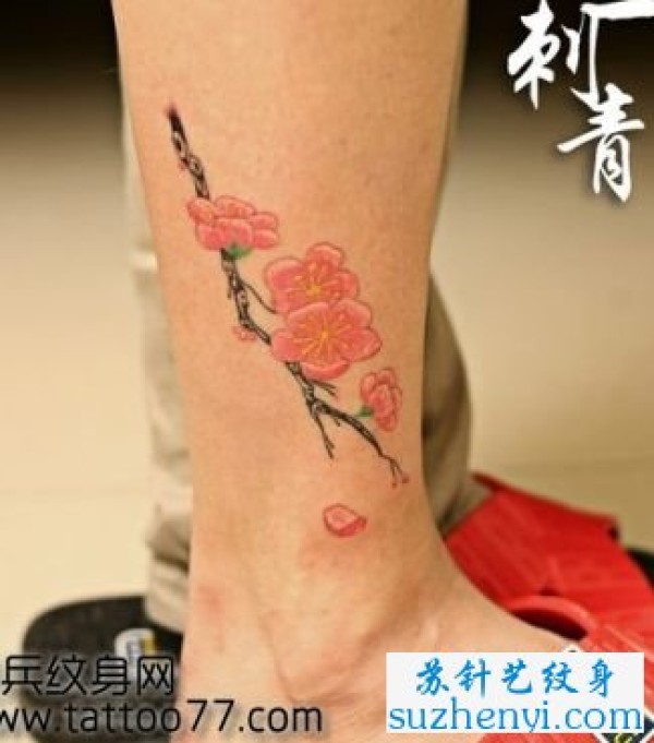 腿部唯美的梅花纹身_腿部纹身图案大全_纹身图吧
