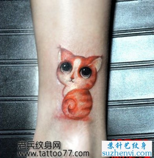 腿部超萌的猫咪纹身_腿部纹身图案大全_纹身图吧