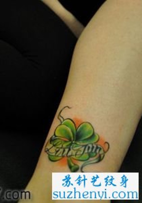 腿部三叶草纹身_腿部纹身图案大全_纹身图吧