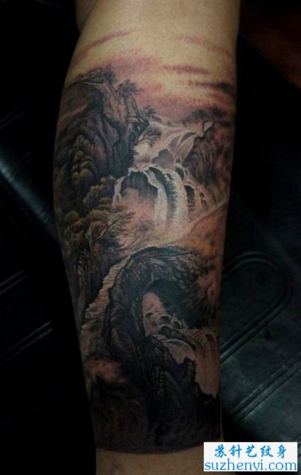 腿部山水画纹身_腿部纹身图案大全_纹身图吧