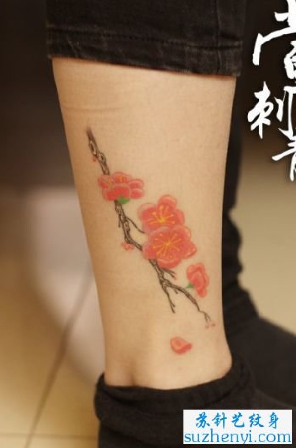 腿部才梅花纹身_腿部纹身图案大全_纹身图吧