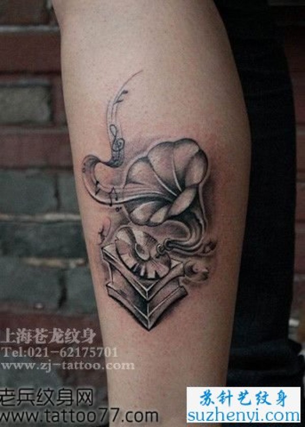 腿部唱片机纹身_腿部纹身图案大全_纹身图吧