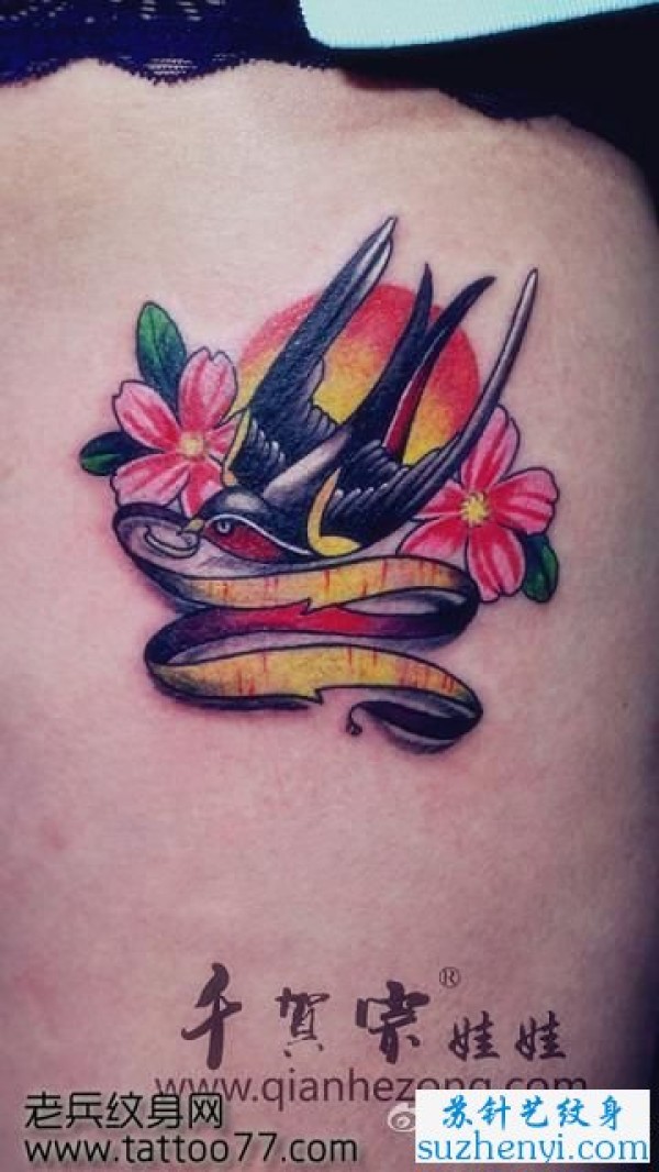 腿部燕子樱花纹身_腿部纹身图案大全_纹身图吧