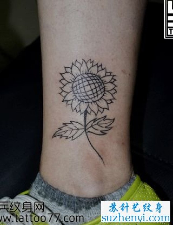 腿部的向日葵纹身_腿部纹身图案大全_纹身图吧