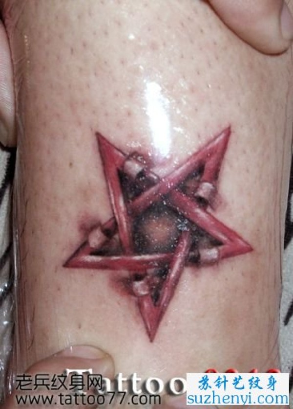 腿部撕皮五芒星纹_腿部纹身图案大全_纹身图吧