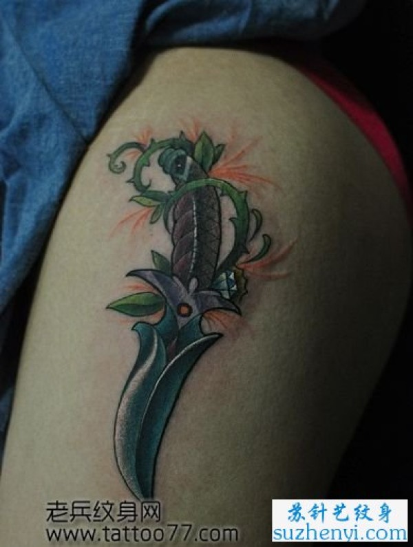 腿部匕首纹身_腿部纹身图案大全_纹身图吧