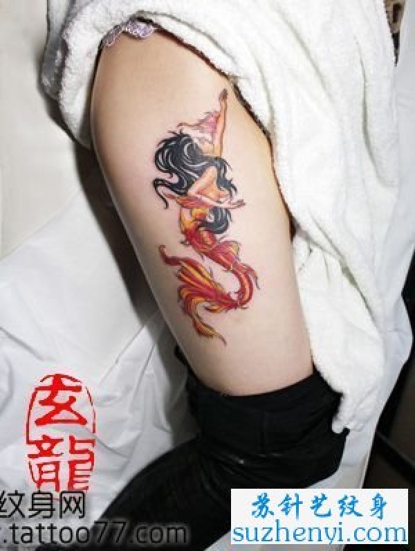 腿部美人鱼纹身_腿部纹身图案大全_纹身图吧