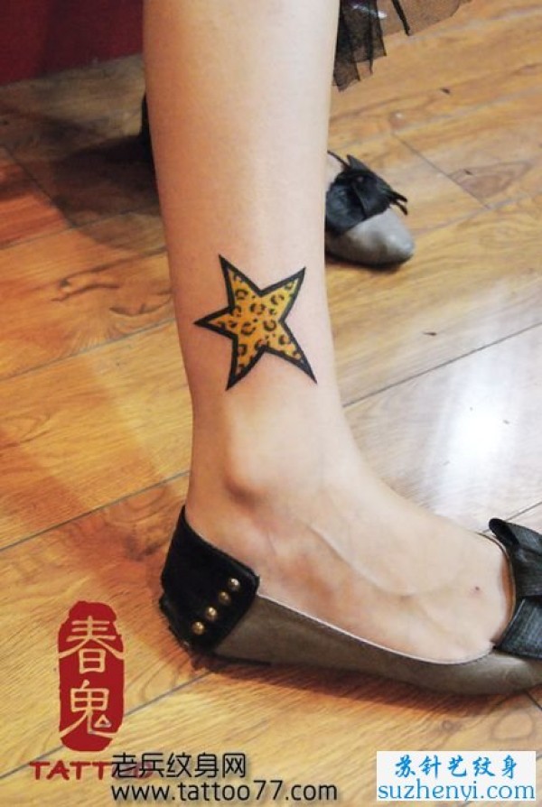 腿部豹纹五角星纹身_腿部纹身图案大全_纹身图吧