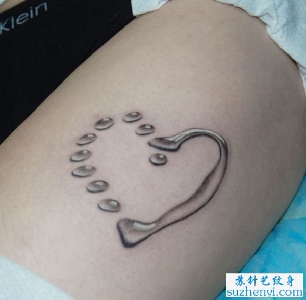 腿部水滴爱心纹身_腿部纹身图案大全_纹身图吧