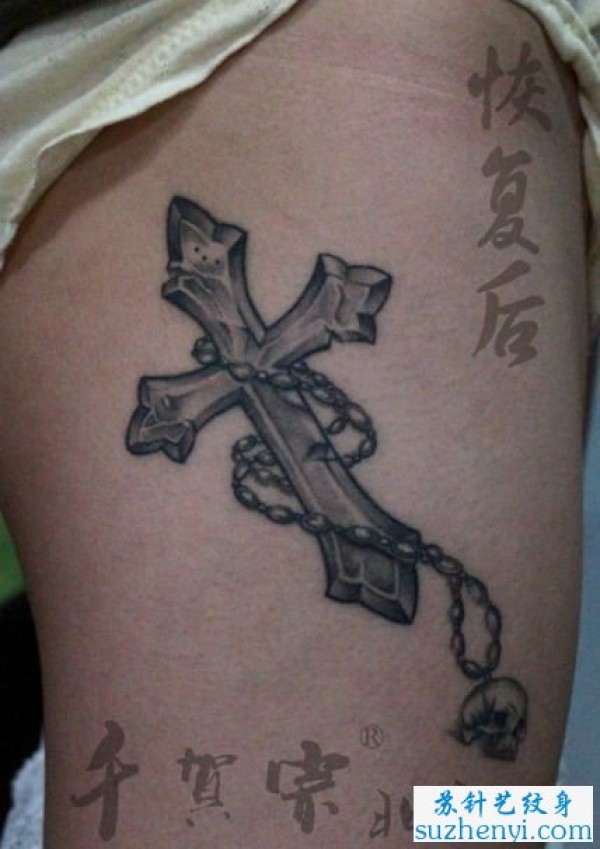 腿部字架纹身_腿部纹身图案大全_纹身图吧