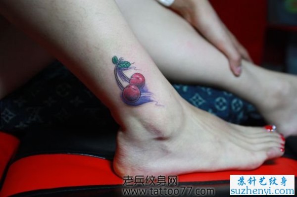 腿部樱桃纹身_腿部纹身图案大全_纹身图吧