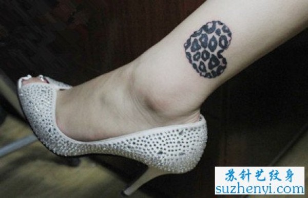 腿部豹纹爱心纹身_腿部纹身图案大全_纹身图吧