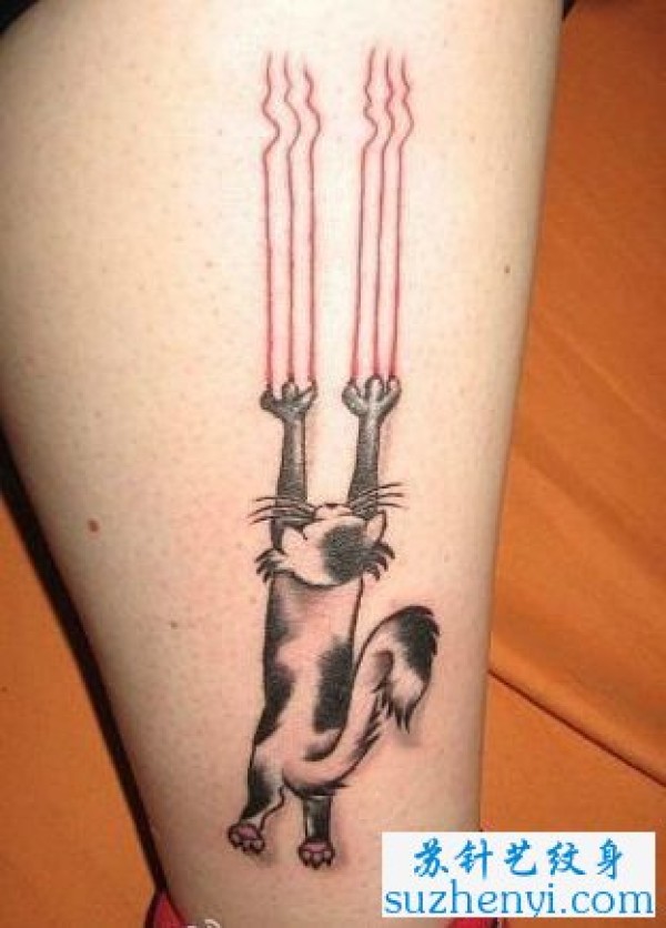 腿部可爱猫咪纹身_腿部纹身图案大全_纹身图吧