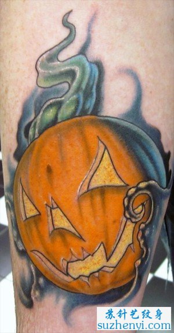 腿部万圣节南瓜纹身_腿部纹身图案大全_纹身图吧