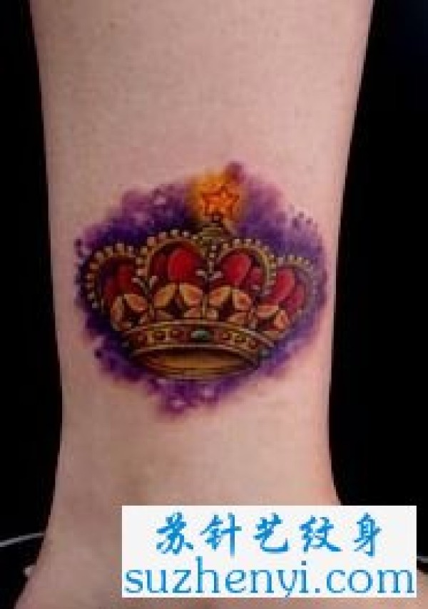 腿部彩色皇冠纹身_腿部纹身图案大全_纹身图吧