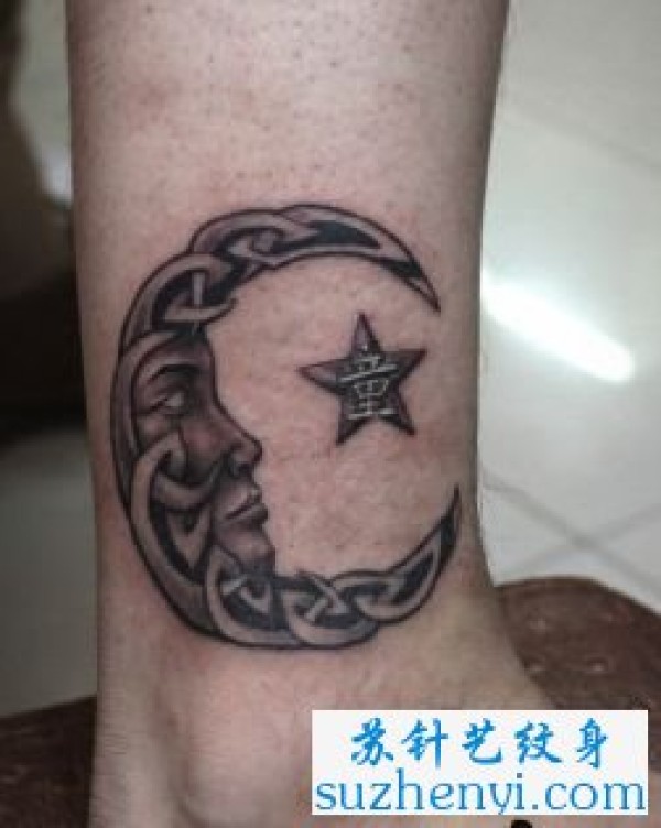 腿部月亮星星纹身图案纹身_腿部纹身图案大全_纹身图吧