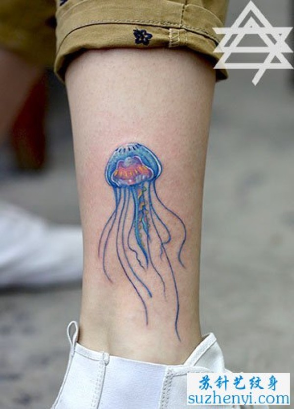 腿部水母纹身_腿部纹身图案大全_纹身图吧