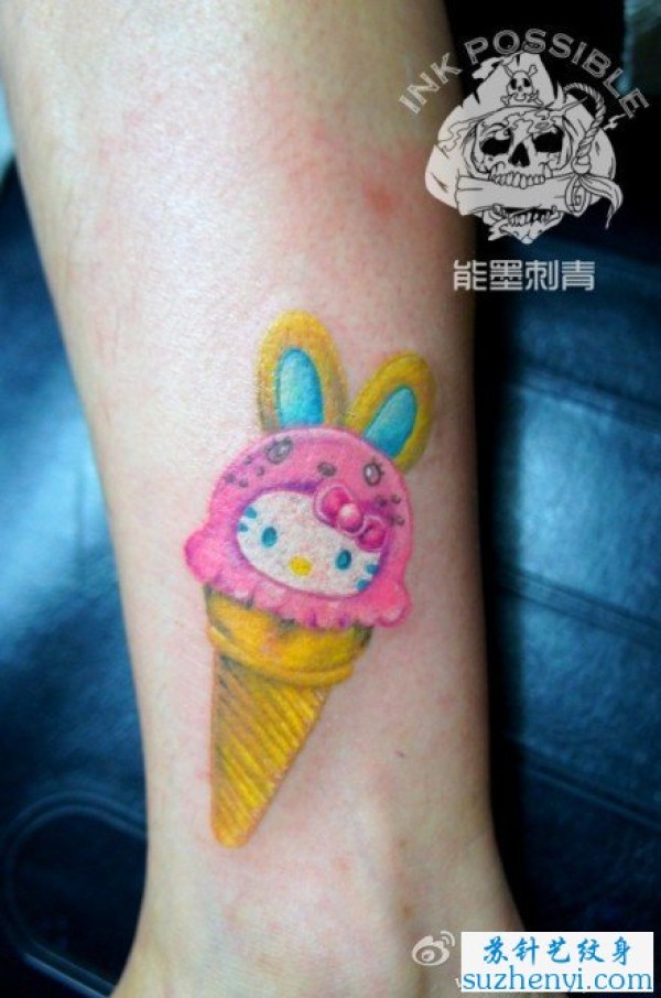 腿部猫咪兔子冰激凌纹身_腿部纹身图案大全_纹身图吧