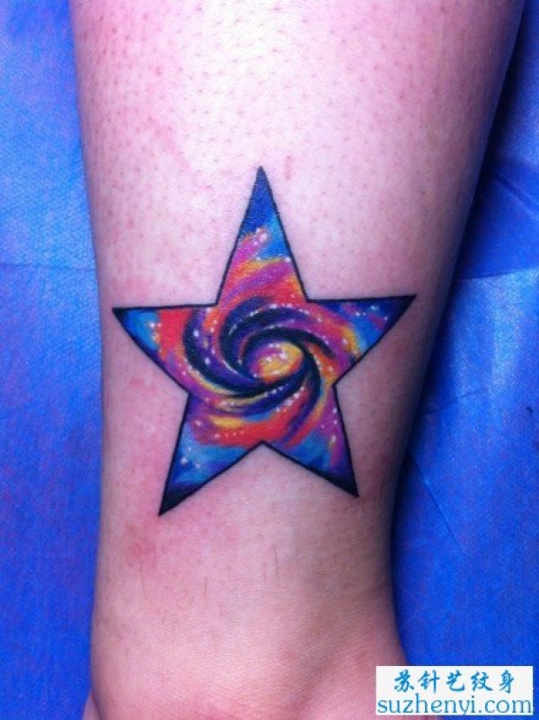 腿部彩色星空五角星纹身_腿部纹身图案大全_纹身图吧