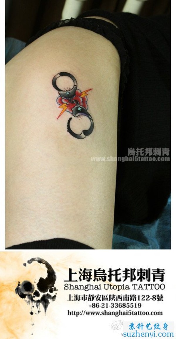 腿部的小手铐纹身_腿部纹身图案大全_纹身图吧