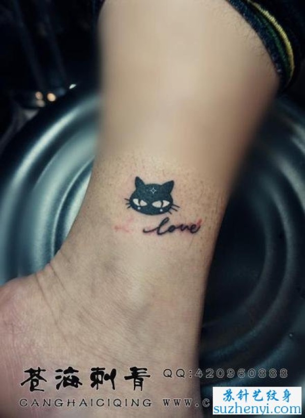 腿部的小猫咪纹身_腿部纹身图案大全_纹身图吧