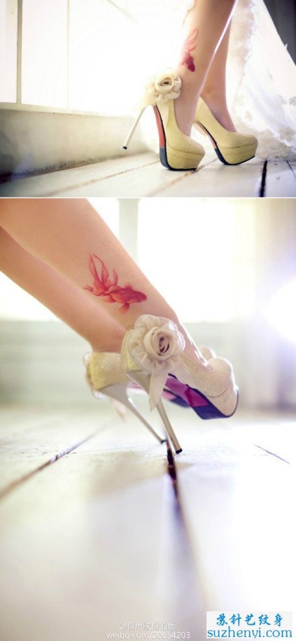 腿部的彩色小金鱼纹身_腿部纹身图案大全_纹身图吧