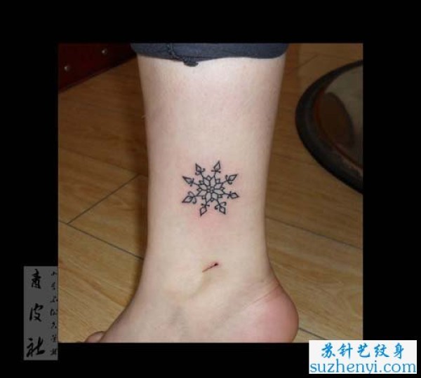 腿部线条雪花纹身_腿部纹身图案大全_纹身图吧