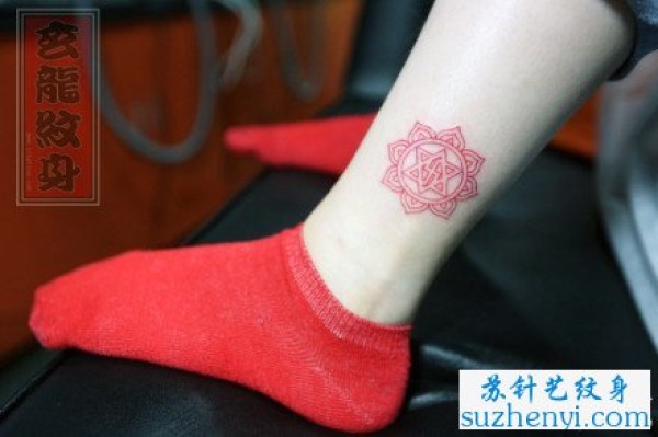 腿部六芒星与莲花纹身_腿部纹身图案大全_纹身图吧