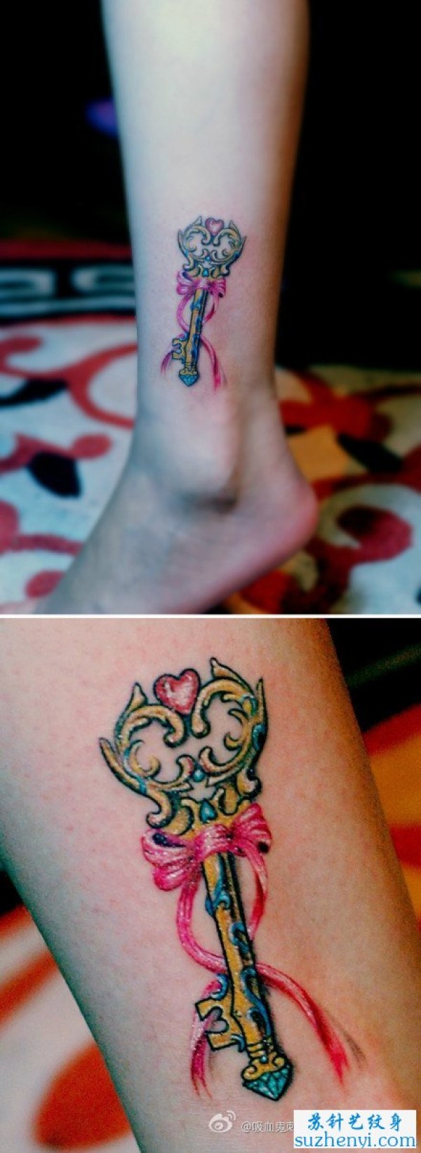 腿部彩色小钥匙纹身_腿部纹身图案大全_纹身图吧