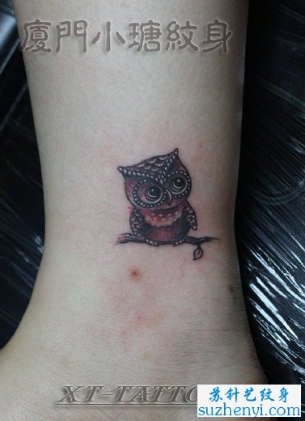 腿部猫头鹰纹身_腿部纹身图案大全_纹身图吧