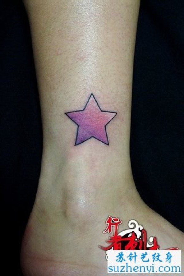 腿部彩色小五角星纹身_腿部纹身图案大全_纹身图吧