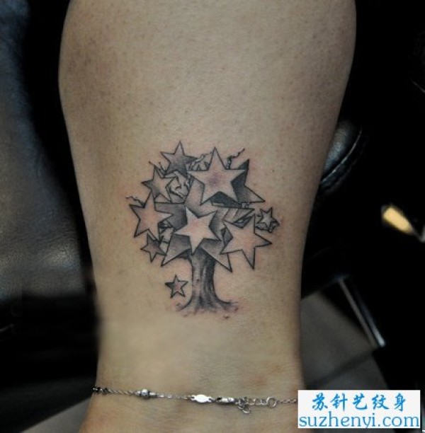 腿部的一枚五角星小树纹身_腿部纹身图案大全_纹身图吧