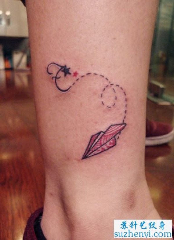 腿部的小飞机纹身_腿部纹身图案大全_纹身图吧