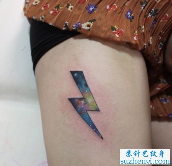 腿部闪电与星空纹身_腿部纹身图案大全_纹身图吧