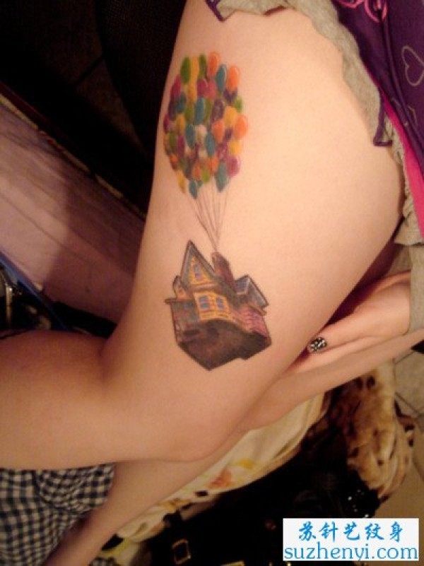 腿部气球与房子纹身_腿部纹身图案大全_纹身图吧