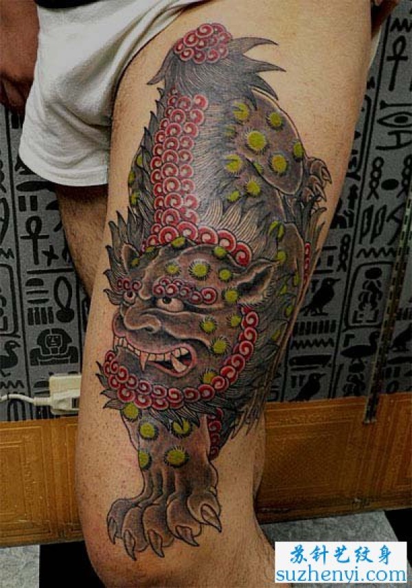 腿部唐狮子文身_腿部纹身图案大全_纹身图吧
