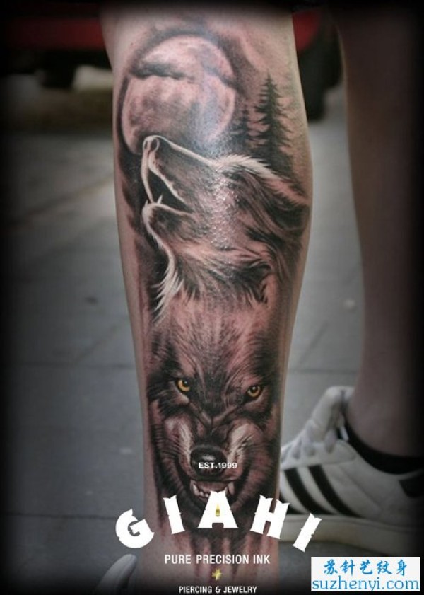男人腿部超酷的狼头_腿部纹身图案大全_纹身图吧