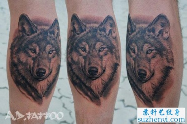 男人腿部超酷时尚的狼头_腿部纹身图案大全_纹身图吧