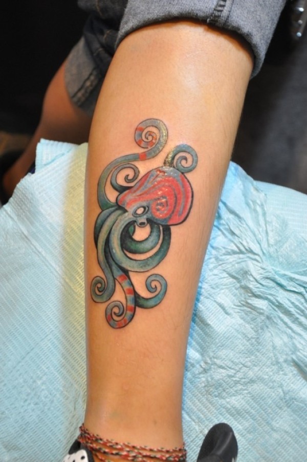 腿部可爱彩色八爪鱼纹身_腿部纹身图案大全_纹身图吧