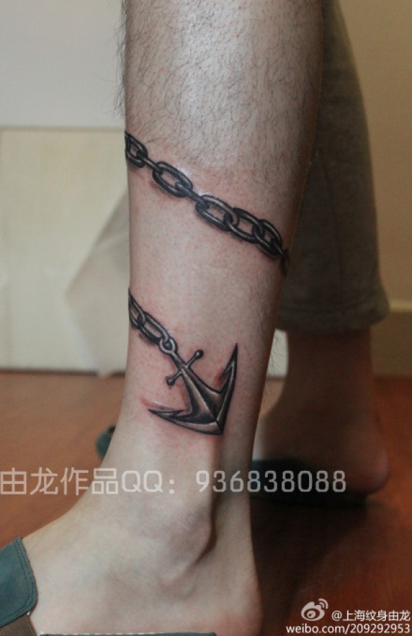 男生小腿锚链纹身_腿部纹身图案大全_纹身图吧