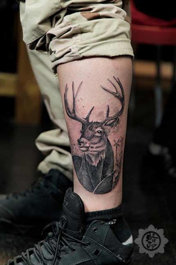 小腿鹿头纹身_腿部纹身图案大全_纹身图吧