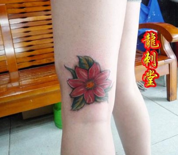 腿部蛇彩色莲花纹身图案_腿部纹身图案大全_纹身图吧