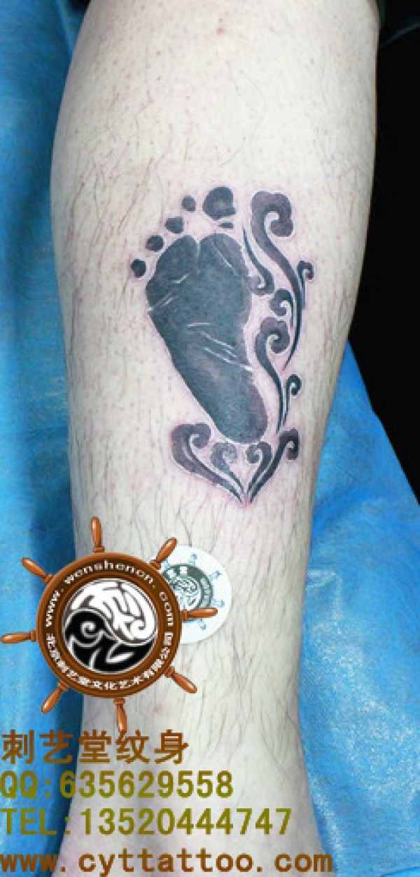 小腿脚印纹身_腿部纹身图案大全_纹身图吧