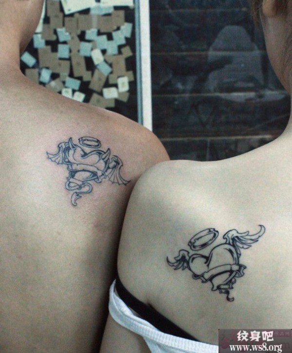 个性情侣emoyutianshixin恶魔与天使心_天使纹身图案大全_纹身图吧