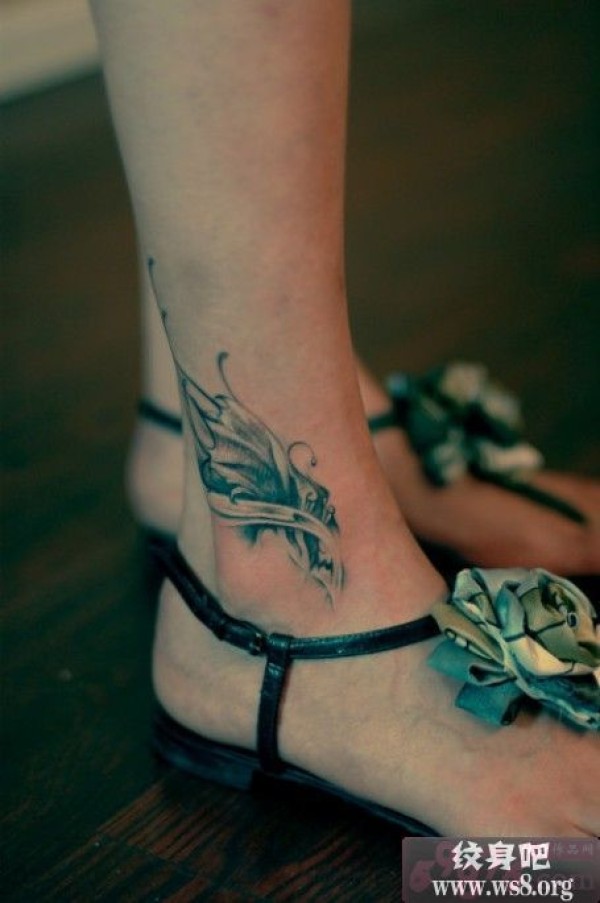 单翅天使羽翼脚踝纹身图案_天使纹身图案大全_纹身图吧