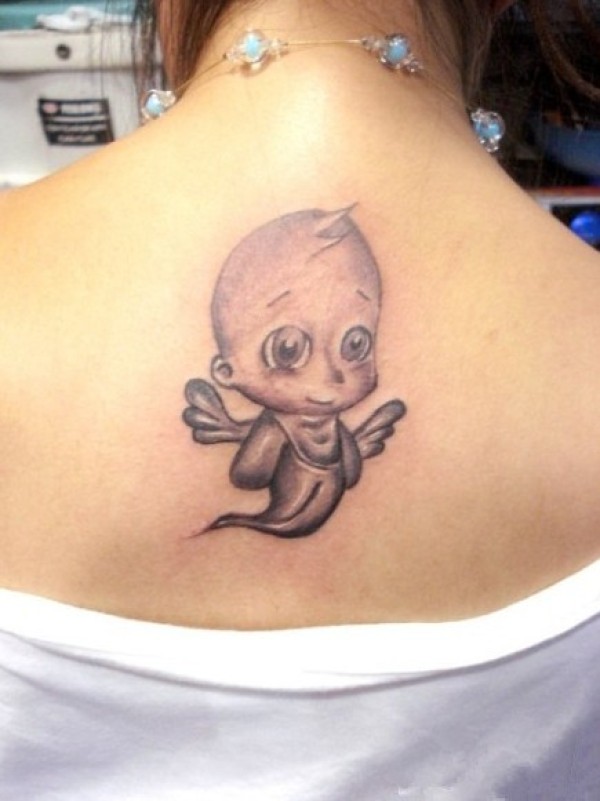 女生背部 小人天使纹身_天使纹身图案大全_纹身图吧