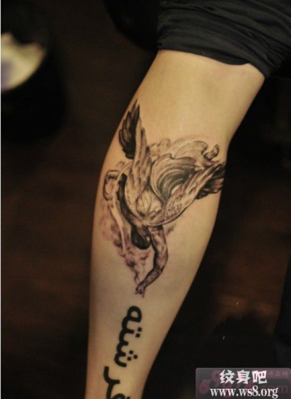 坠落天使小腿刺青图案_天使纹身图案大全_纹身图吧